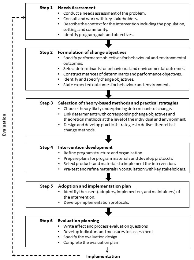Bartholomew, L. K., Parcel, G. S., Kok, G., Gottlieb, N. H., Fernandez, M. E. (2011). Planning health promotion programs: an intervention mapping approach. Wiley.